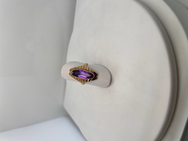 mooie klassieke dames ring met een Amethist. De schulprand is heel apart bewerkt, hetgeen je niet vaak ziet bij deze monturen.